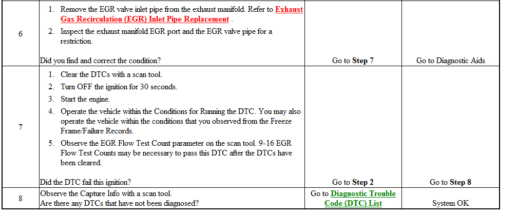 Normally, the PCM will only allow one EGR flow test during an ignition cycle. To aid in verifying a repair, the PCM will allow up to 16 EGR flow test counts during the first ignition cycle following a code clear event. Between 9-16 EGR flow test counts should be sufficient for the PCM to determine adequate EGR flow and pass the EGR flow test. If the PCM detects an EGR flow error, DTC P0401 sets.