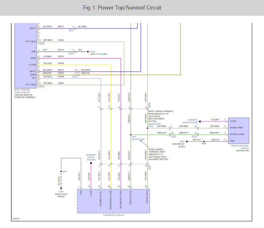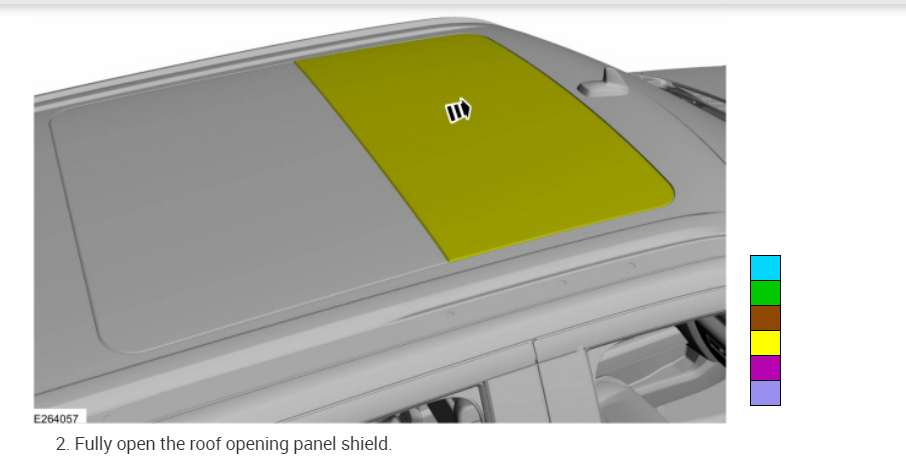 NOTE: The roof opening panel motor must be initialized when repairs are carried out on the roof opening panel system, including: any time the roof opening panel motor has been removed, the roof opening panel glass (fixed panoramic or front sliding) has been removed or adjusted, or if the roof opening panel frame has been removed.