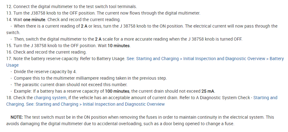 If I open a door or turn on the dome light or cargo lamp and then turn it off, the draw never goes down to.003 amps. It stays at approximately 0.185 amps forever. The lights go out.