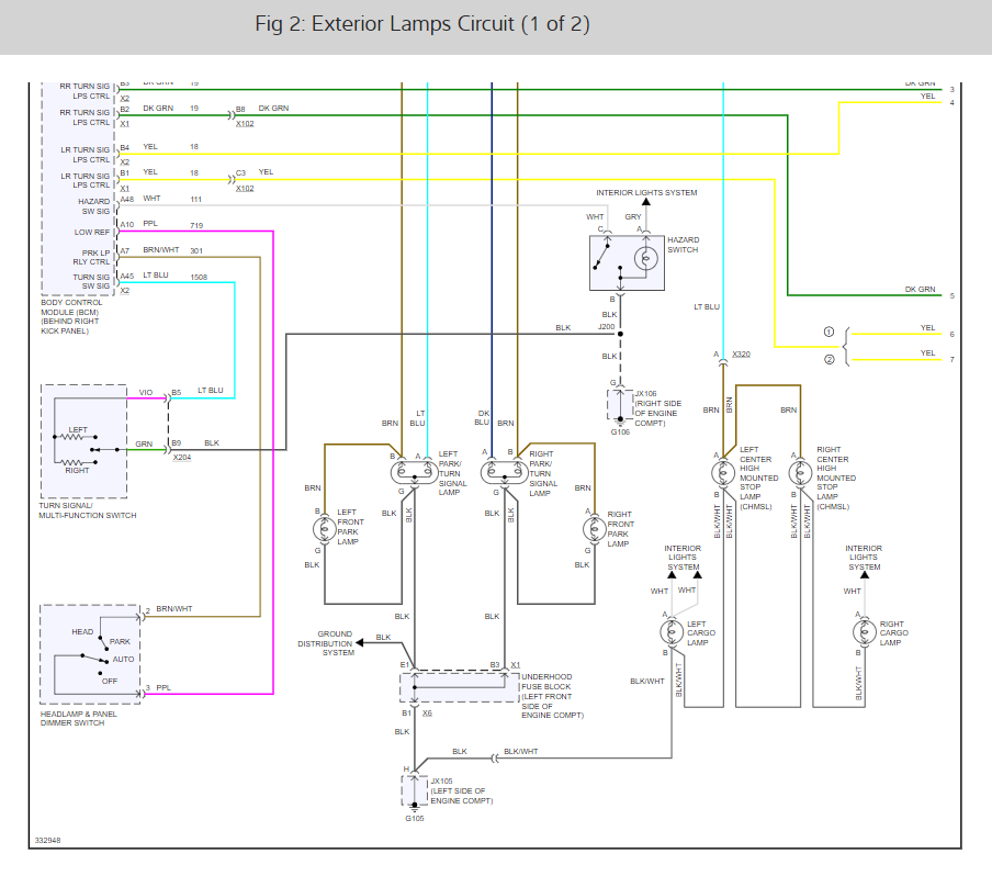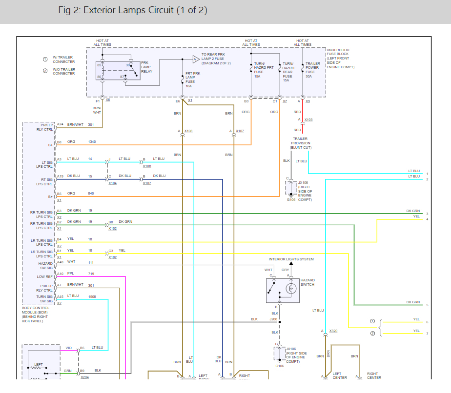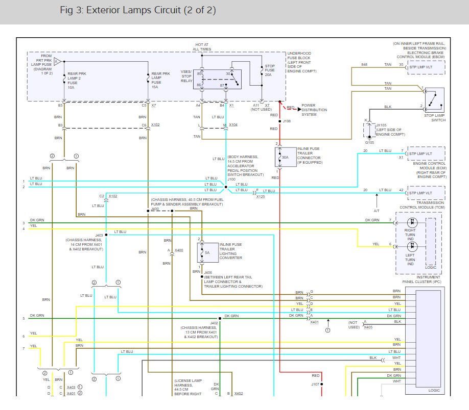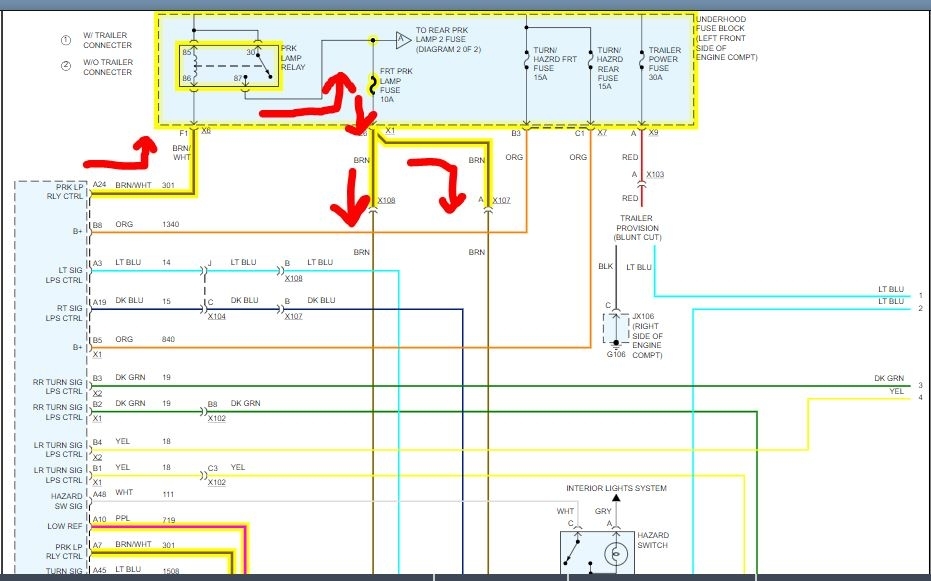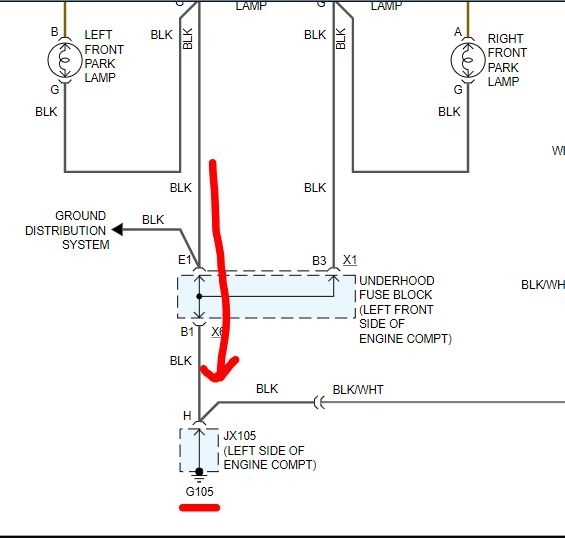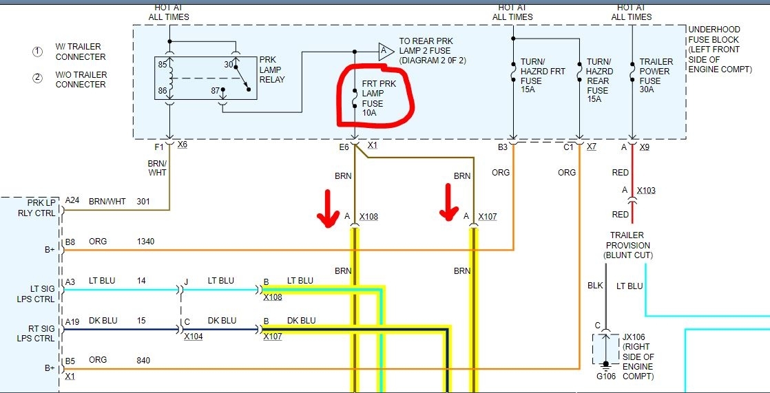There really isn't a lot left. Have you confirmed that the ground wasn't damaged? If you look at the attached pics, (I had to break the schematic into several parts) you'll see that power goes via the switch to the body control module. When you turn the lights on, power is sent via the switch to the BCM and the out of the BCM to the park lamp relay. From there it runs to the front parking lights and finally to ground. Since you have no power at the light socket, it can't be a ground because you provide a new ground with a test light. So the problem is before. At this point, you need to work backwards. We know the fuse is good and has power, so the break has to be between the fuse and lights.