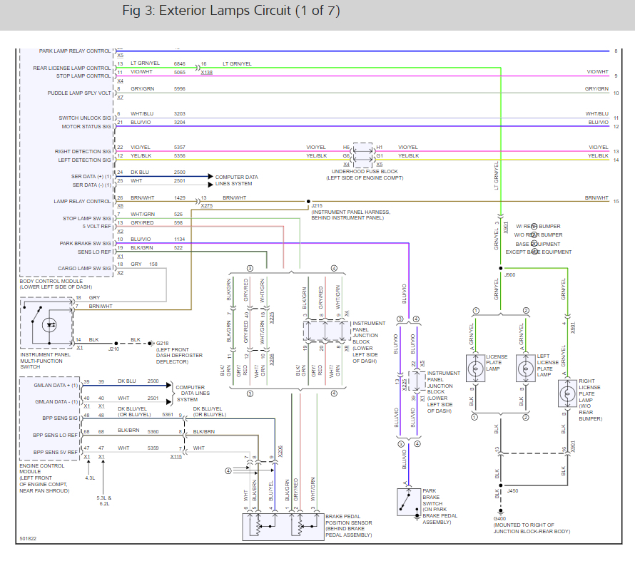 There is a park lamp relay we need to check and a handful of fuses. here is the relay location and a guide on how to test the relay with the fuse locations and a guide to help check for power there. I have also included the running light wiring diagrams so you can see how the system works and which fuses to check in the diagrams below.