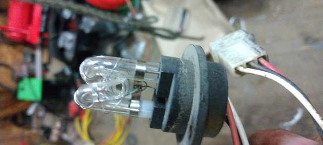 I'm not sure if the switch is bad or someone has changed things. At least based on the schematics, the brown wires should only have power when the switch is on. I believe the one smaller plug is for the dimmer.