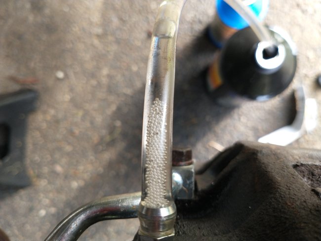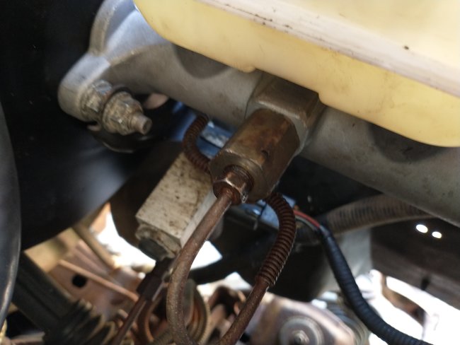 No I haven't opened the system again. I just started bleeding from the front left rather the the right rear. Seems that the brake fluid will drain about 5 inches in the tube with no bubbles and then I get a long stream of small bubble starting again. I probably topped the master cylinder off 15 times tonight while trying to bleed the front. The fluid coming out of the bleeder is new, clean fluid too, so all of the old fluid has been flushed from previous bleedings. When I replaced the left brake line that connects to the caliper I just replaced the line. I didn't replace the caliper. The bleeder screw for the two front calipers is on top of the caliper. I did bench bleed the master cylinder per instructions included with the master cylinder. I've again checked for leaks at all connections and find none. When I've pumped the brakes with the engine off the pedal firms up nicely and stays firm. There is no slow bleed down if it's left sitting for awhile. Also, when the brakes are pumped with the engine off you can hear the rear brakes expanding. I hear a squeak from the left rear wheel each time I press the pedal and, in the past, when I've attempted to bleed the rear wheels I can hear the brakes loosening up when the pressure is let off of the wheel. You mentioned the possibility the master cylinder main plunger possibly not being pushed. When I've bled the front brakes the bleeder screws shoot out a nice about of fluid when I've pressed the pedal with the engine off and the bleeder screw open. When I've done this the bleeder is sealed because the end of the bleeder tube is submerged in clean brake fluid. I think the master cylinder is okay because when I firm the pedal up when the engine is off the pedal goes down a decent amount on the first push, and then firms up a bit each press of the pedal afterwards until it reaches the point where you can't firm it up any more. If I'm not mistaken the master cylinder is strictly hydraulic as far as operation goes, so if it were a bad master cylinder I likely wouldn't be able to build pressure when the engine is off would I? I mean with everything I suspect it has to be air in the system, but I'm not sure how I could do anything different to get the air out than what I already have done. I mean having to top off the master cylinder so many times just to bleed the front brakes just seems abnormal. I'm going to check tomorrow to see if the brakes function with the vacuum line to the booster disconnected just to see what it does. Don't know what else to try, lol. Thanks again for the help.