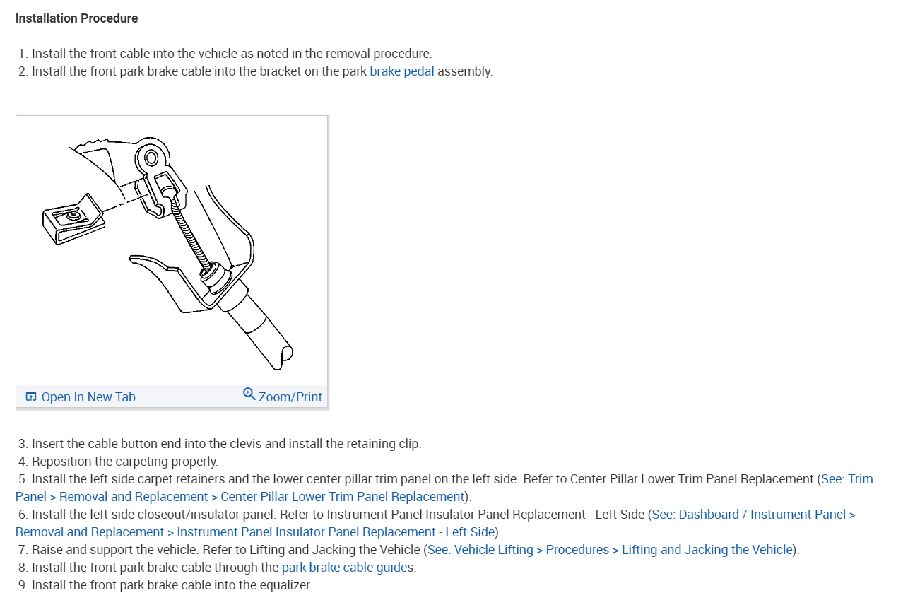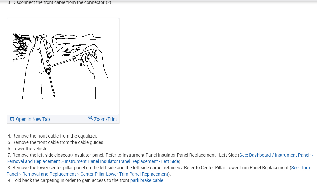 9. Fold back carpeting in order to gain access to the front park brake cable.