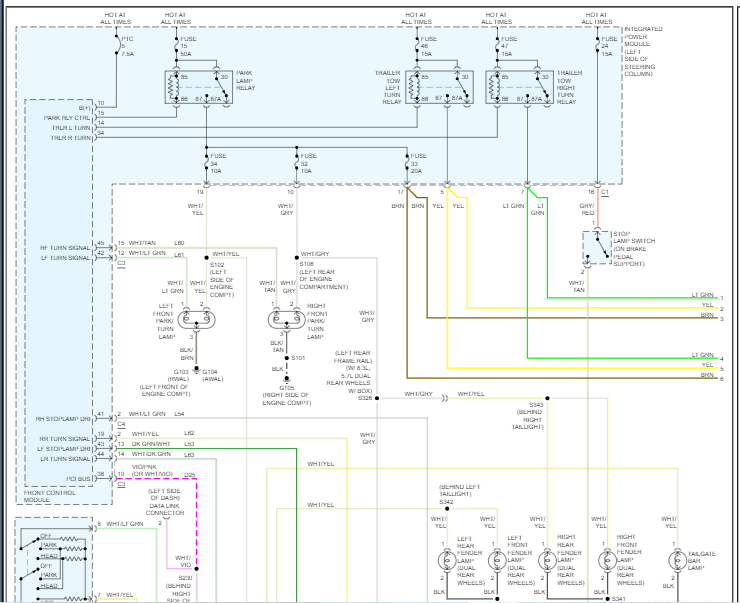 See pics below. Pics 1-4 are the exterior lighting circuits. Pics 5-6 are for the headlamps. If there is a different circuit you need, let me know.