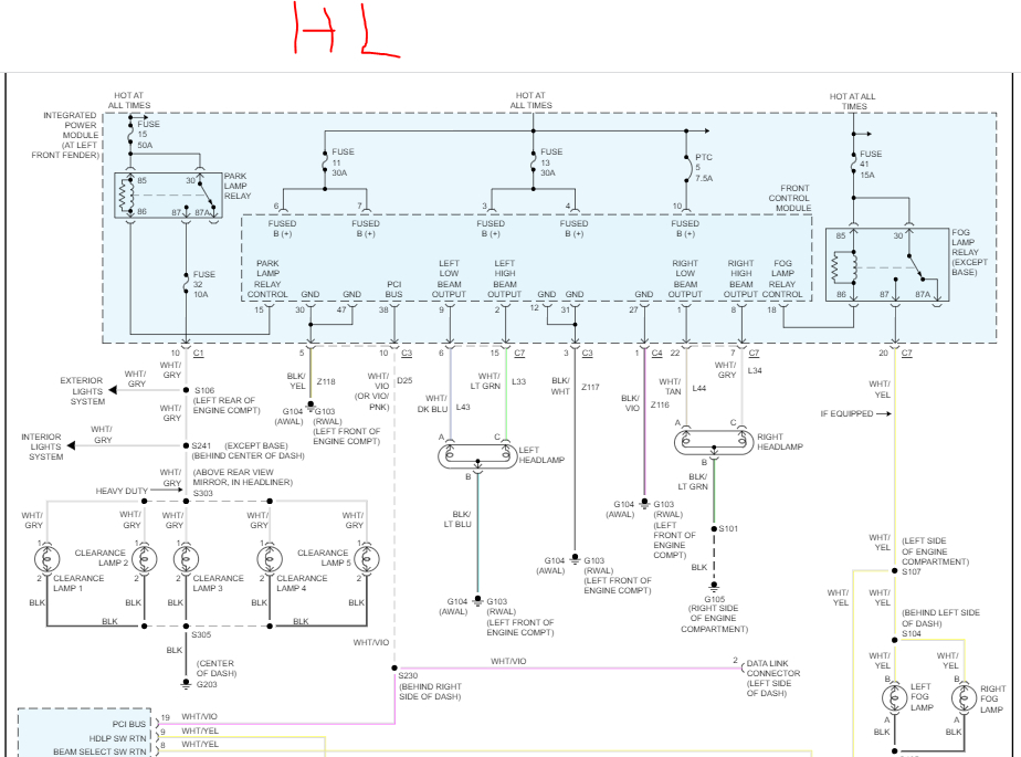 Take a look and see if anything helps. Additionally, (FYI), this vehicle has what is called a totally integrated power module (TIPM). They are known to have connector issues. The TIPM connectors have too many connector pins (as far as I'm concerned) and they are known to break, corrode, and simply fail. Most interesting is the component (for example one of the headlamps not working) will show battery voltage when it's disconnected from the bulb. Once connected, the wire can't handle the load and fail.