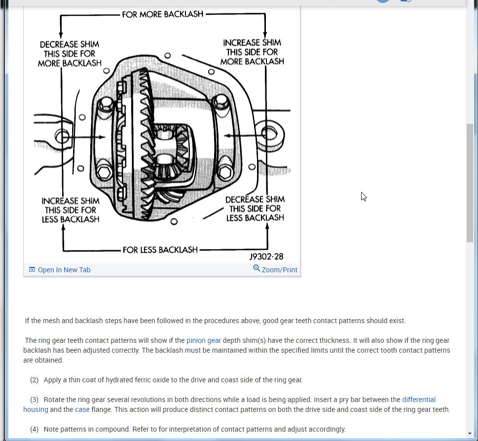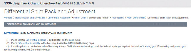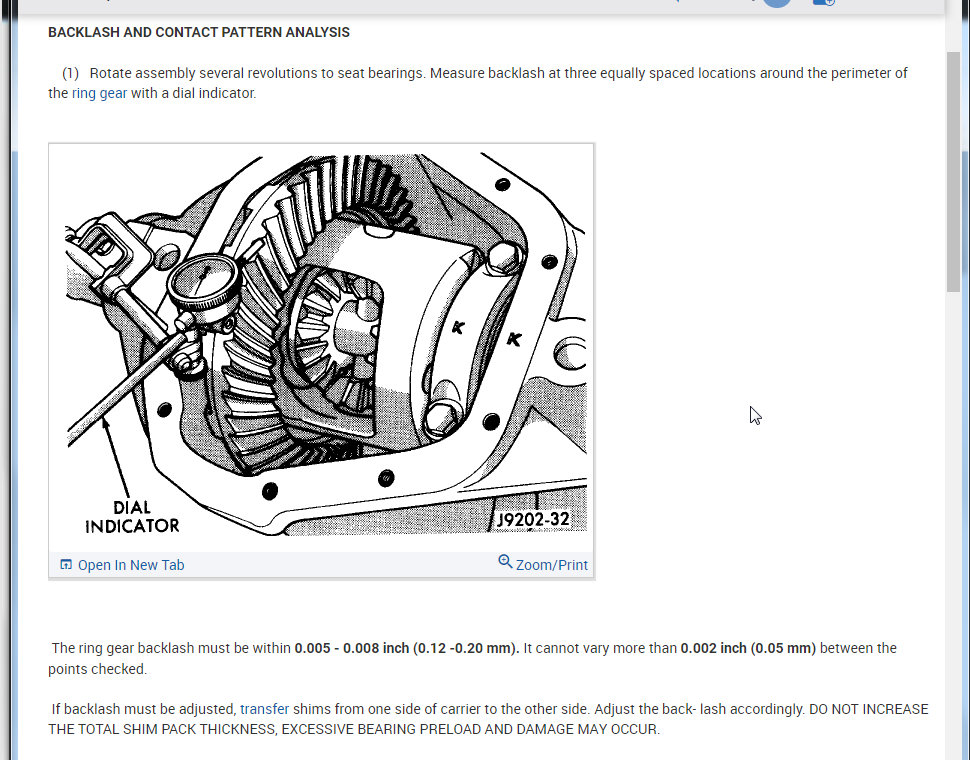 Below is the process from the manual on how to set the backlash and pinion depth.