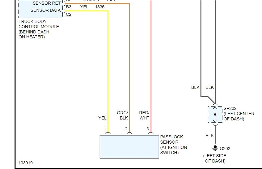 Security light on. Tried key on off thing no luck. The pass lock is a large box with 3 wire plugs. I tried jumping the purple wire to ground. Now I have lost spark.