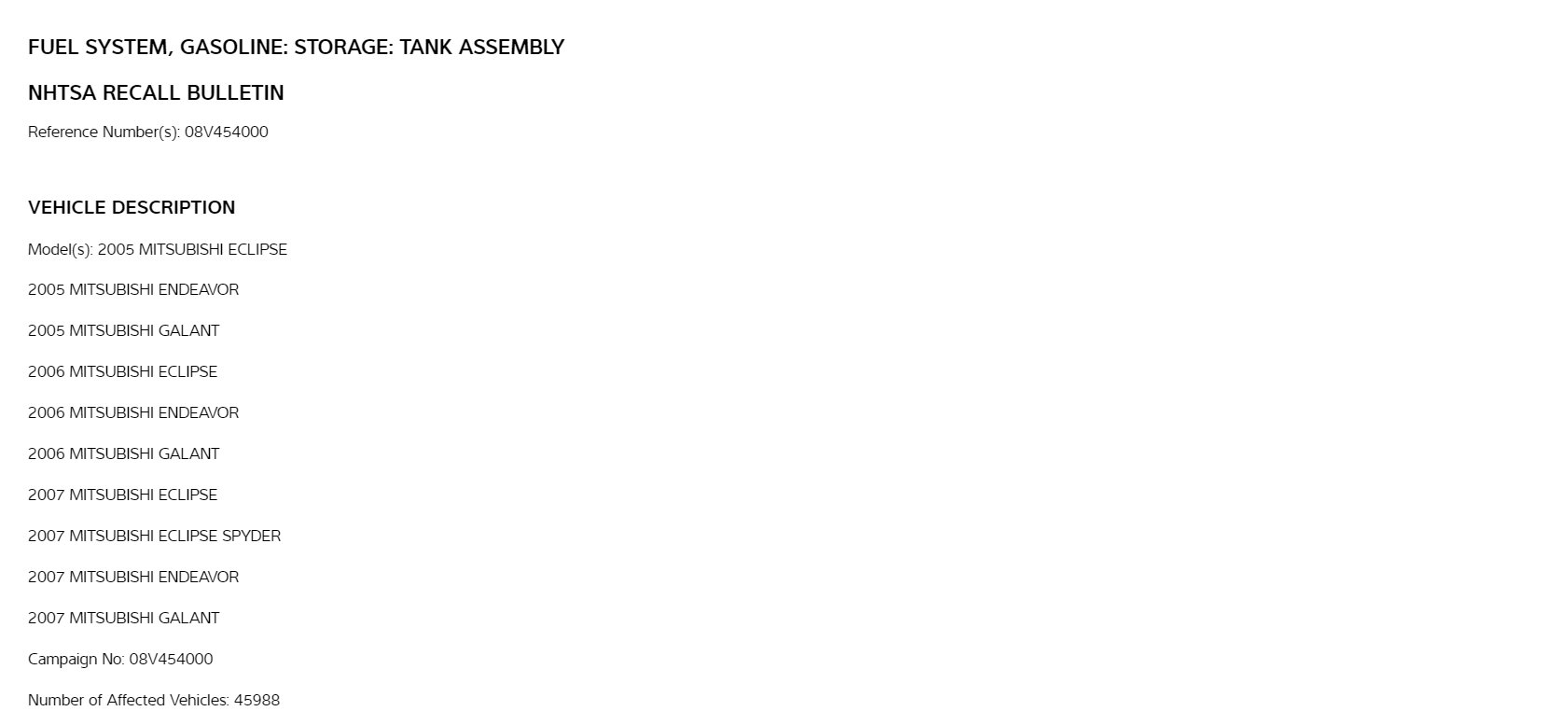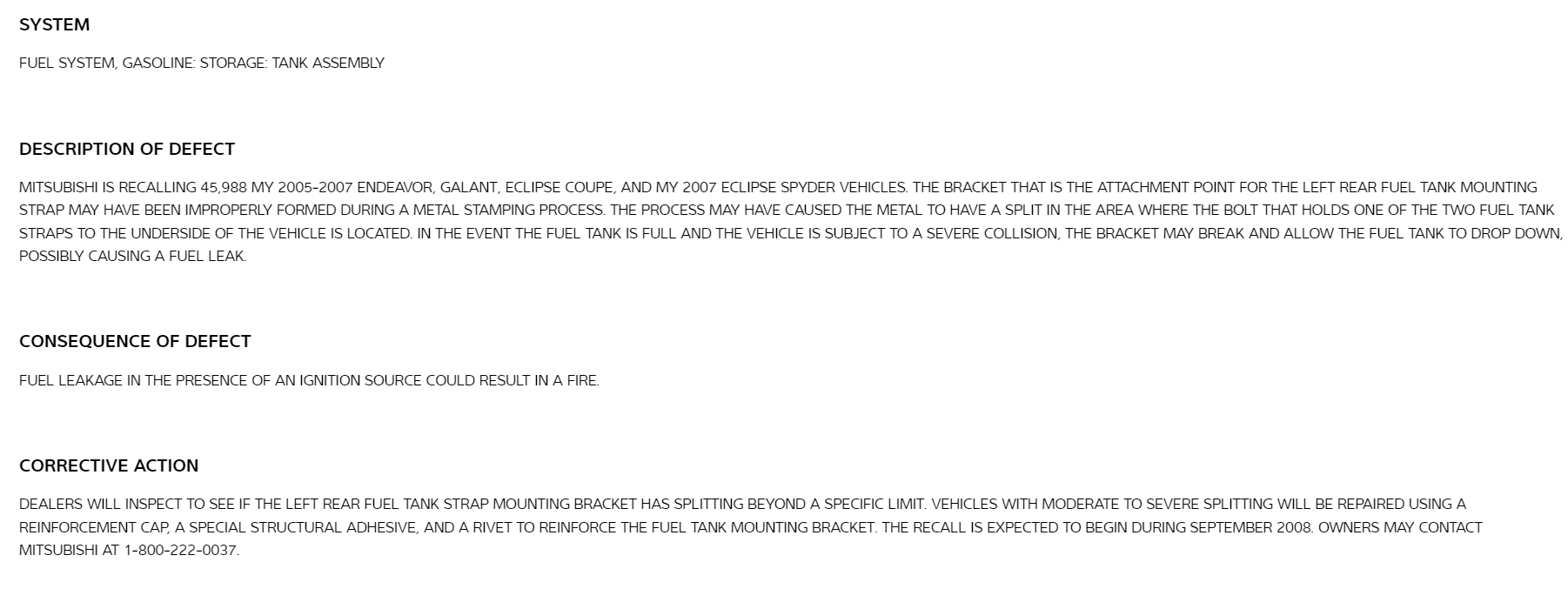 I also wanted to inform you that there is a Recall on this vehicle for the Gas Tank Supporting Strap. I will put the information below. This is a safety concern, if the strap breaks it can cause fuel to leak out of the tank. Since this is a Recall, the dealership must fix it for free. (Pages 1 and 2)