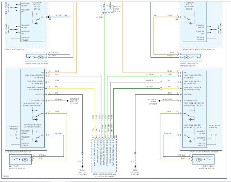 See pics below. Pics 1 and 2 are the wiring schematic for the windows. I added it as a reference for you.
