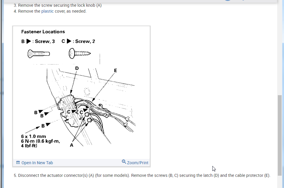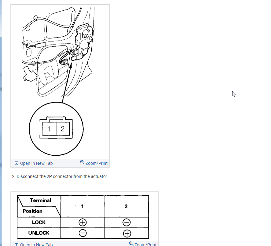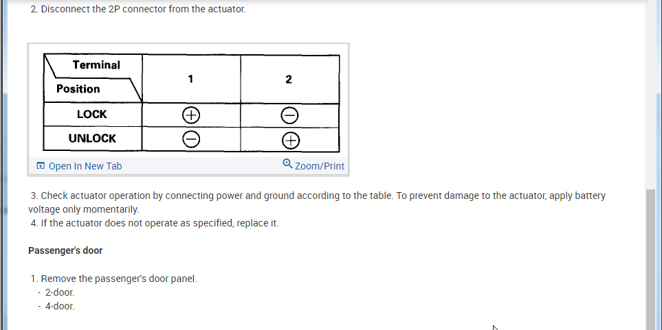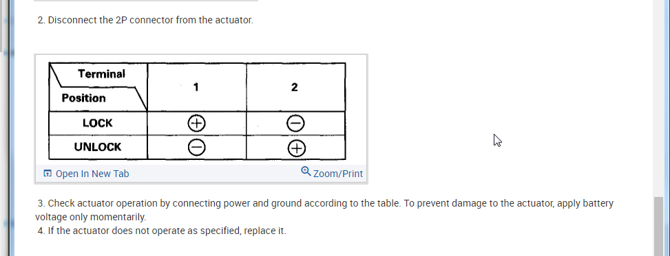 So I attached the info from the manual below on how to access the latch and test the actuator. Let's see if the handles (inside and outside) are moving the latch.