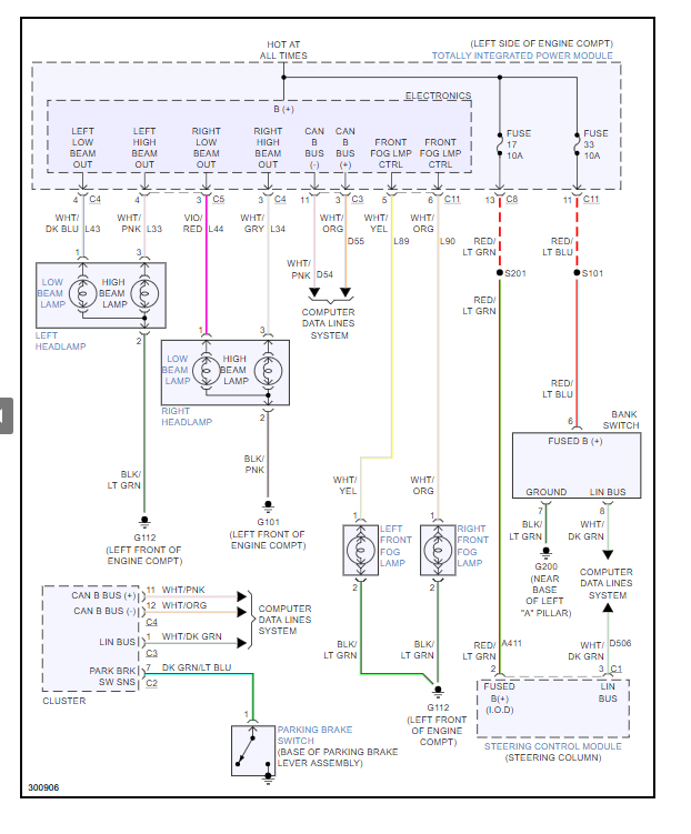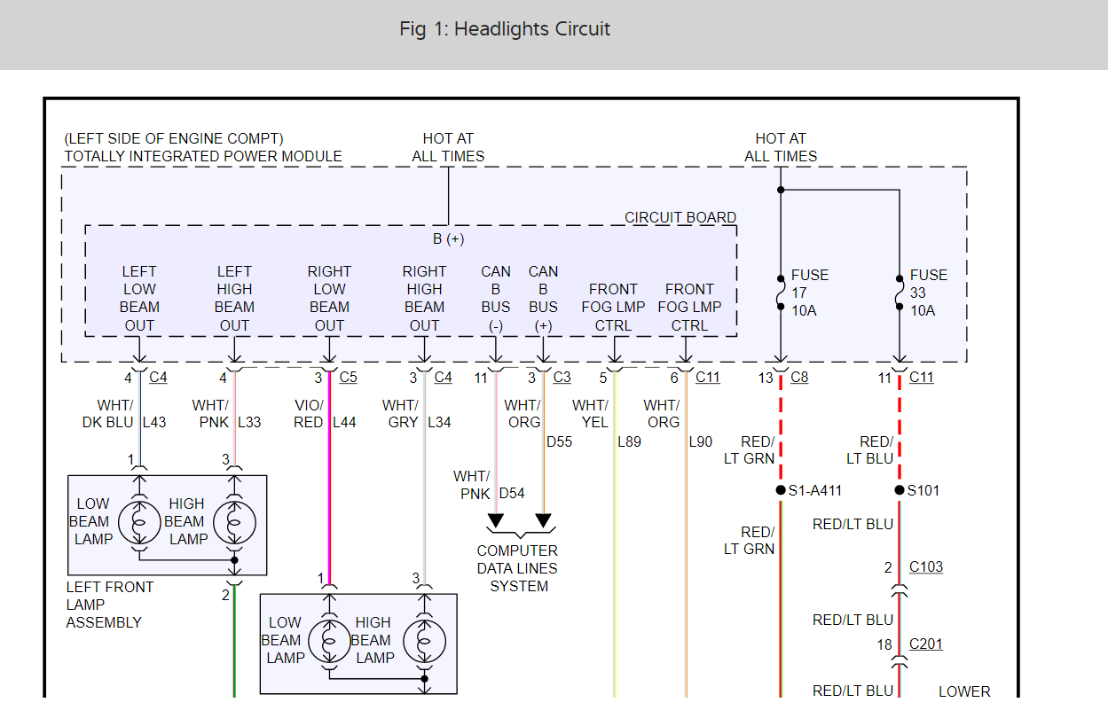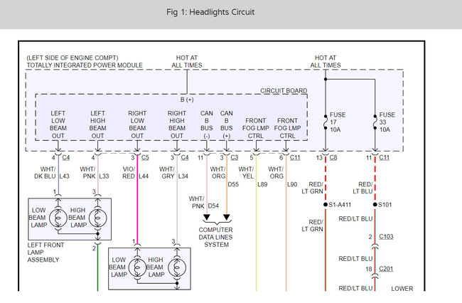 I attached a wiring diagrams (below) of the lights for you so you can see how the system works. The power comes from the TIPM or the fuse box based on input signals.