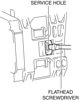 4. Insert a tape-wrapped flathead screwdriver into the service hole in the position shown in the figure.