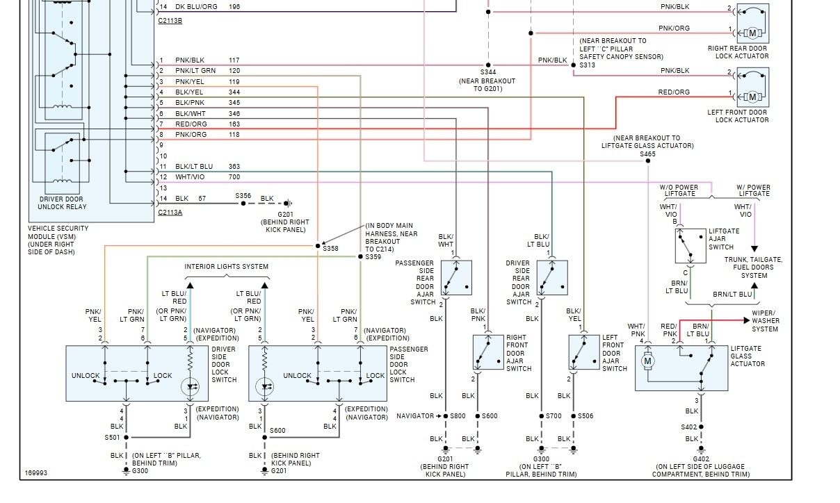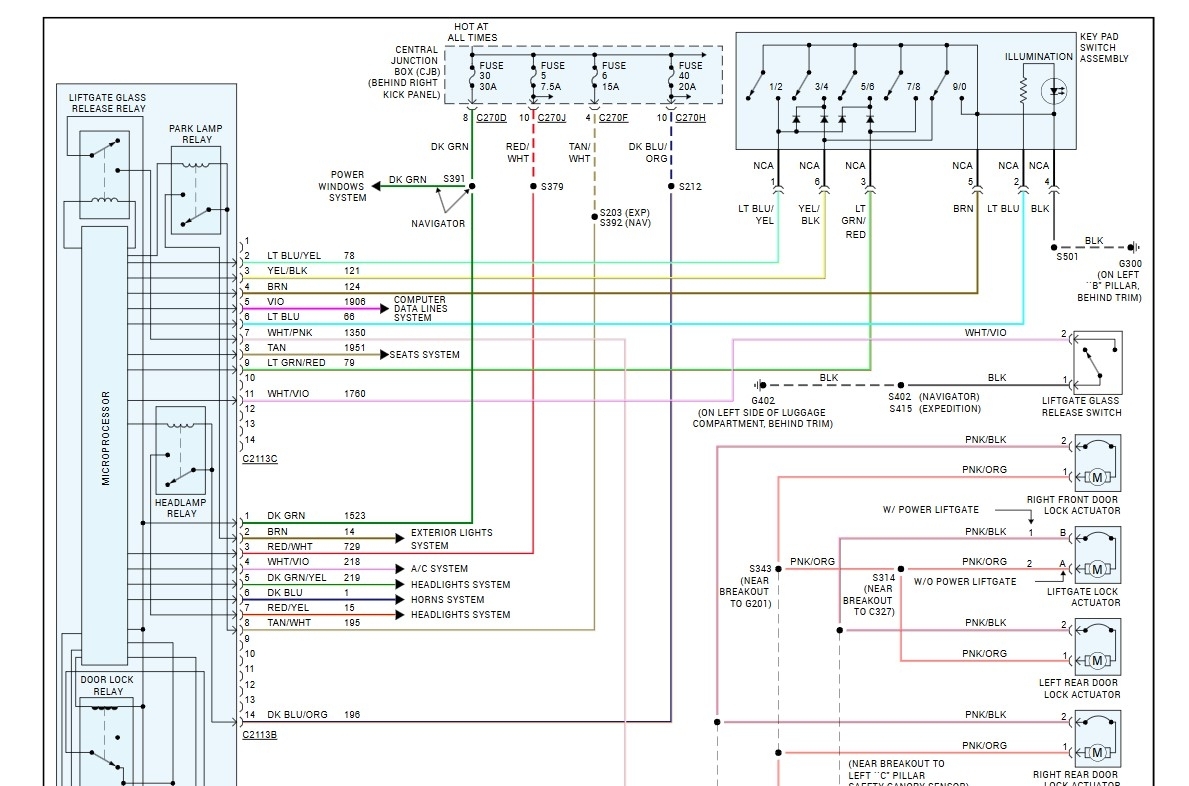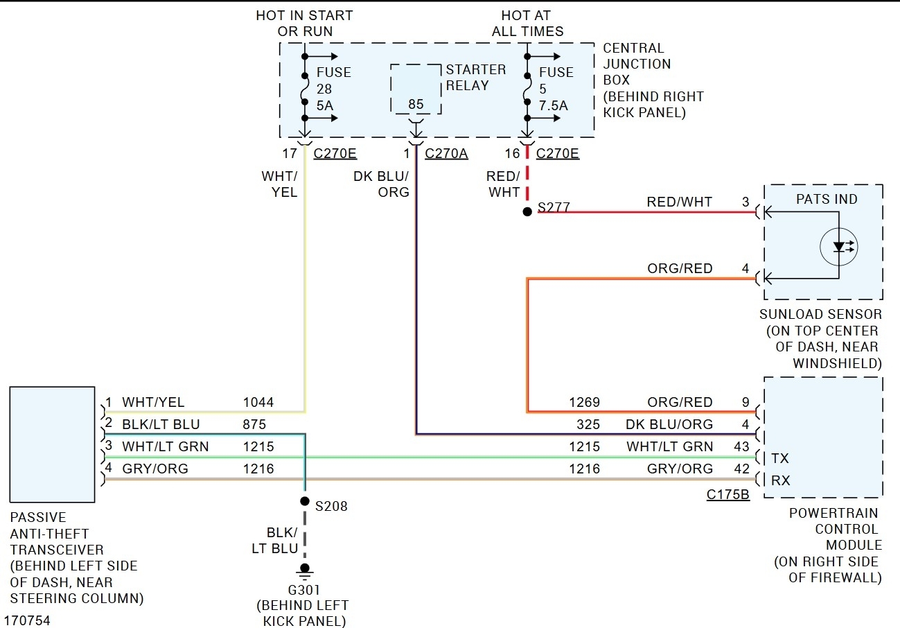 The box on the left is the disconnected theft unit. The various wires that come from it are color coded and numbered at the connector as to where they go. Then you see the black dots? Those are connection splices. Dotted lines or outlines are for incomplete items. Say you have fuse 5 which comes out of the fuse box at terminal 10 and feeds the alarm at pin 3 in the B connector. The dotted lines at the top mean the fuse powers other items as well.
