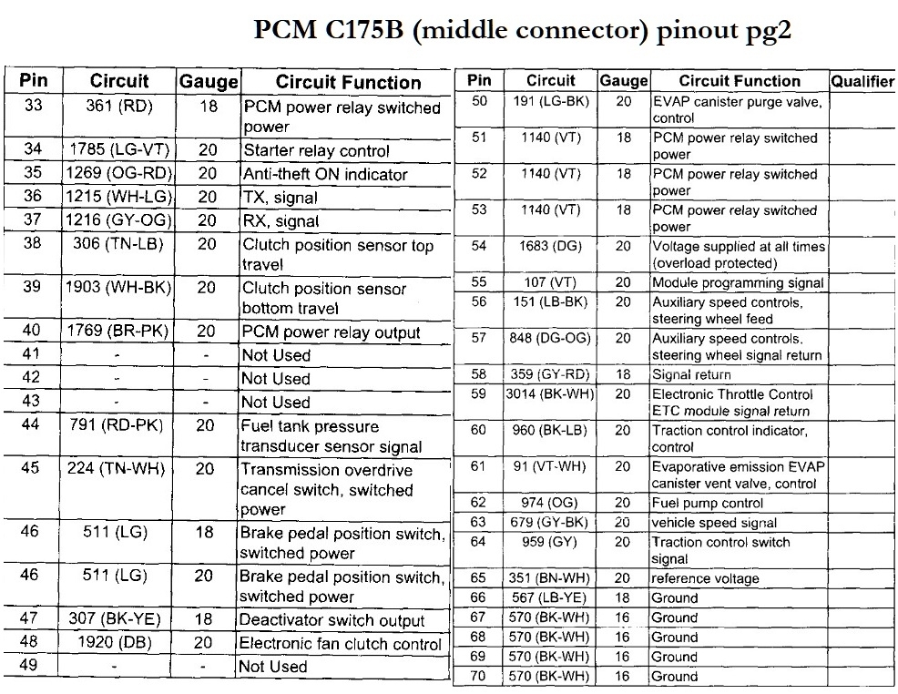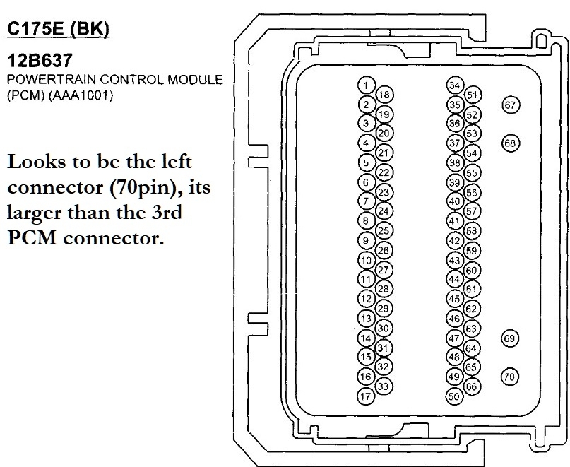 These are all 3 PCM connector pinouts and hopefully the correct location on the PCM as well if needed. But try to go by wire color and location in each connector to be sure.