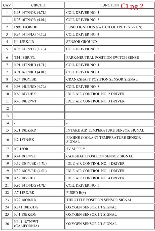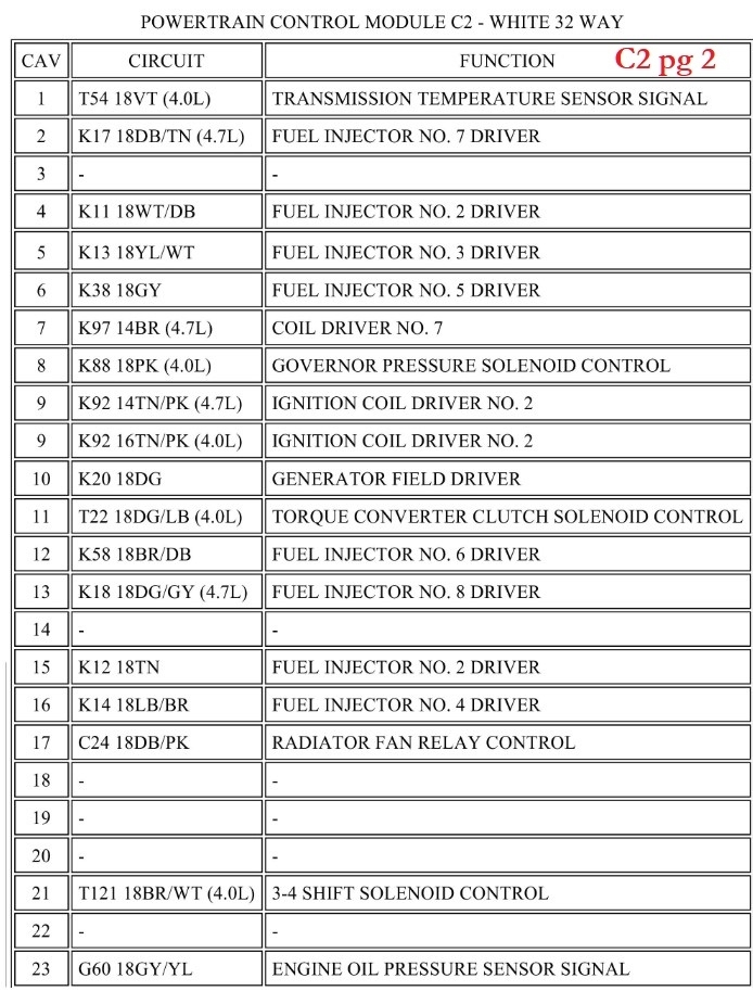 I have a 1999 jeep Cherokee sport 4x4 4.0. Someone cut my wife's wire harness and took I think c3 plug I can't find out what wire goes on each pin. She can't go to work.