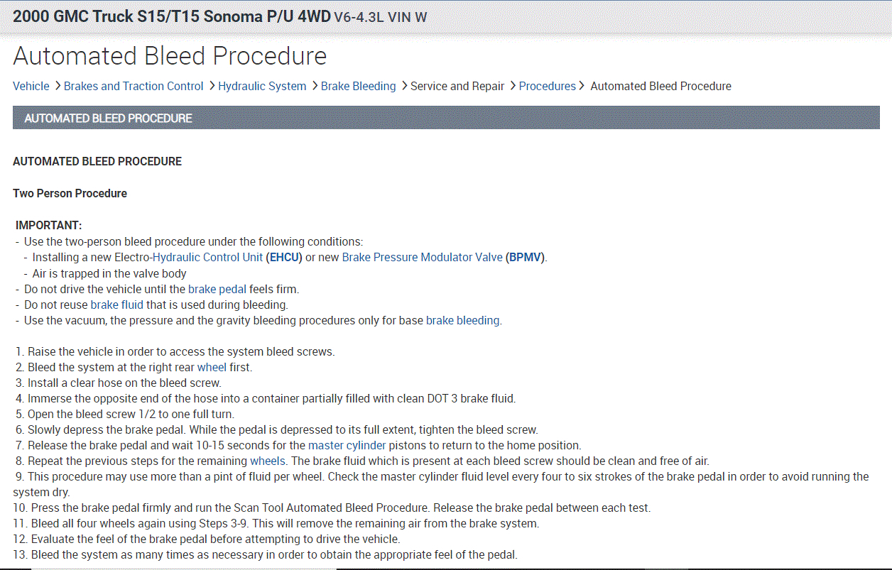 I attached the directions below. The first part explains to do what you have already done, bleed the brakes. The second part is the automated bleed procedure.