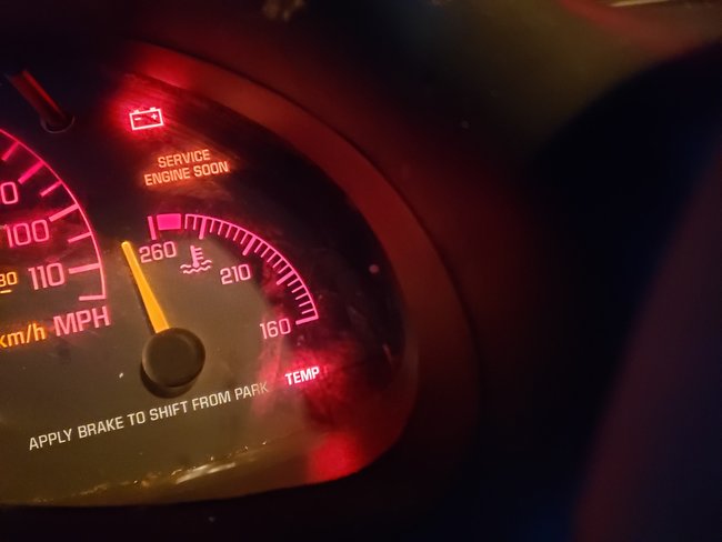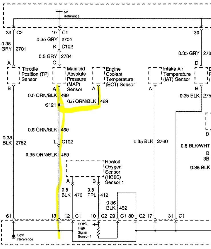 The ground signal is shared with the MAP sensor. To test it you can use a multi-meter set to ohms. Then look at the pin with the orange wire with black stripe. This is the shared sensor ground. Go to the MAP sensor and unplug it and test for continuity between the two orange w/black wires. Then check between them and a good ground. If you find no connection then it is likely that the connector or wire has failed. If you find a ground at the MAP but not the ECT then it is in the wire that goes between them. A quick test there would be to pierce the wire right at the back of the ECT connector and test for ground, then run a jumper from that to a good ground. If the gauge corrects itself with a cold engine and key on you need to repair the ground wire.
