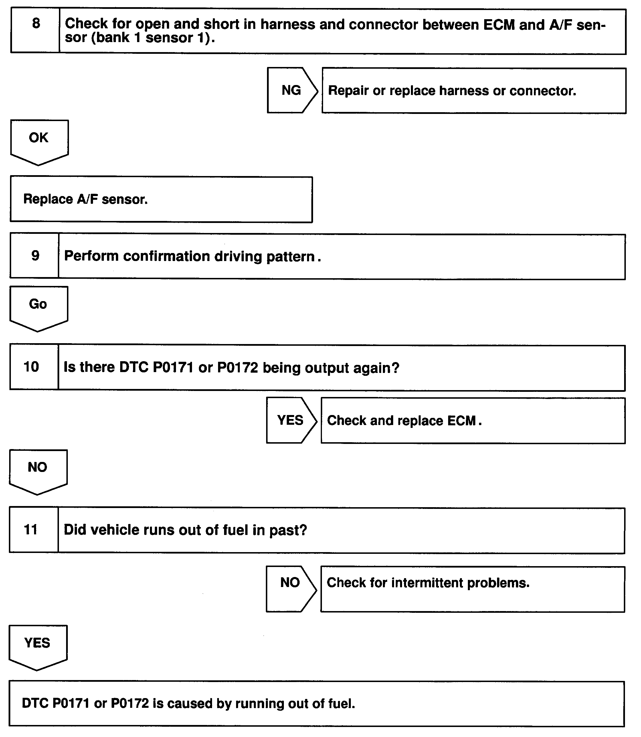 - If the vehicle runs out of fuel, the air-fuel ratio is lean and DTC P0171 is recorded. The MIL then comes on.