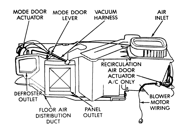 30. From inside the vehicle, pull rearward on the heater A/C unit to clear the dash panel silencer and remove the unit from the vehicle.