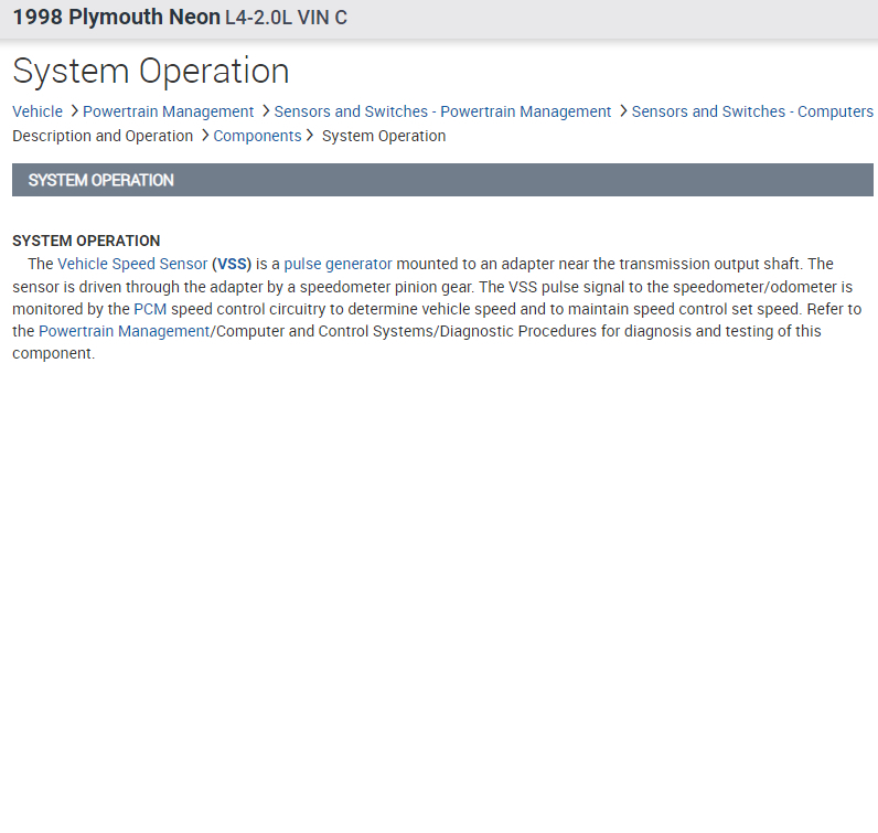 It measures the rotation of the transmission shaft and sends that data to the ECM and that gets converted to the speedometer reading.