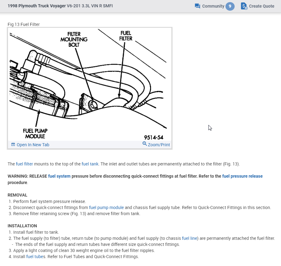 Disconnect fuel lines at fuel pump module and fuel supply line using proper procedure. Remove retaining bolt and fuel filter.