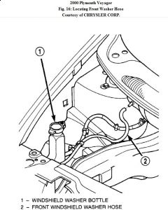 6 . If washer bottle has fluid in it place a suitable drain pan under the hose connections.