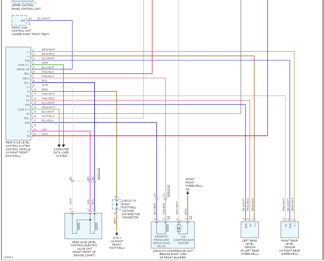 The compressor of the rear suspension Is not functioning. I have scanned the vehicle but no code. Please could I get the wire diagram for the compressor.