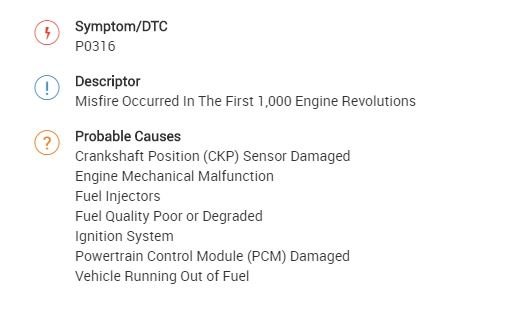 316 is a misfire during the first 1000 engine RPM.