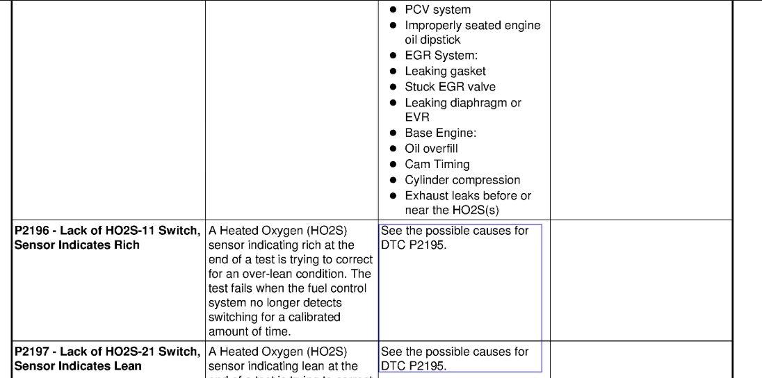 Are DTCs P1131, P1132, P1137, P1138, P1151, P1152, P1157 or P1158 present?