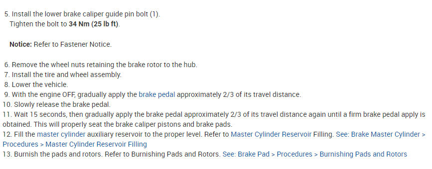 10. If the brake rotor was refinished or replaced, or if new brake pads were installed, burnish the pads and rotors.
