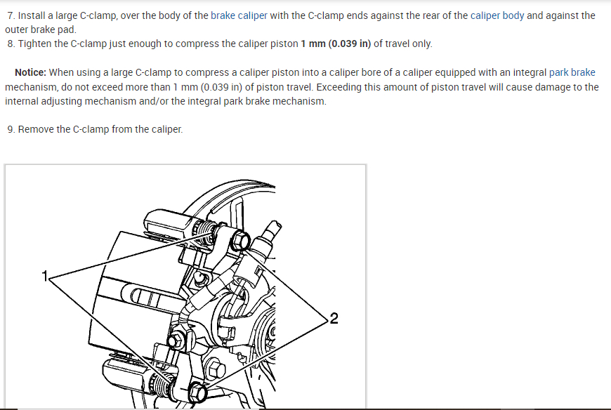 19. Remove the C-clamp and the old brake pad or wood block from the caliper.