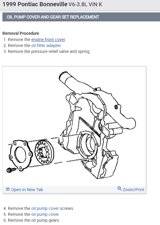 In order to replace the oil pump on this vehicle you will have to remove the engine front cove to get access. To do that you will have to remove the drive belt. Crankshaft pulley, belt tensioner assembly. Also the oil pan needs to be removed as well.