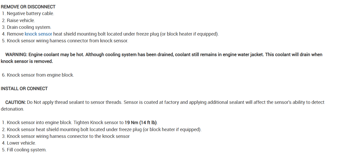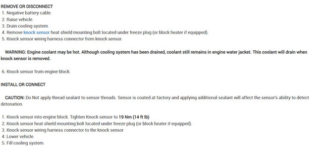 Here are the instructions and the location of the knock sensor which is down low on the engine block. Check out the images (below). Let us know if you need anything else.