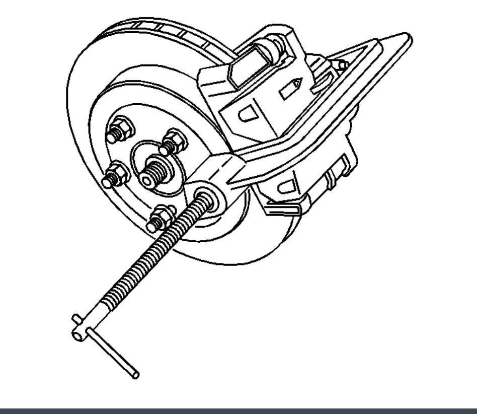 Notice: When using a large C-clamp to compress a caliper piston into a caliper bore of a caliper equipped with an integral park brake mechanism, do not exceed more than 1 mm (0.039 in) of piston travel. Exceeding this amount of piston travel will cause damage to the internal adjusting mechanism and/or the integral park brake mechanism.