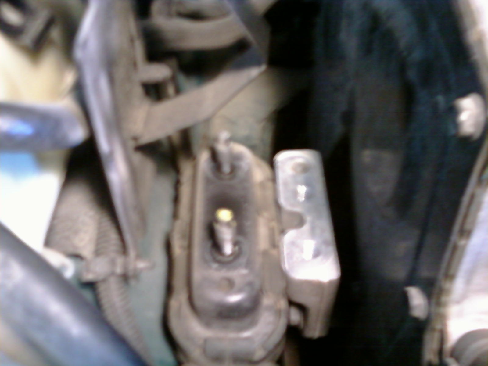 1. Place the floor jack with the block of wood on top of it under the passenger side of the engine near the edge of the oil pan. Raise the jack until it supports the engine. Do nott get too carried away here. You do not want to raise the car with the jack, just support the engine.