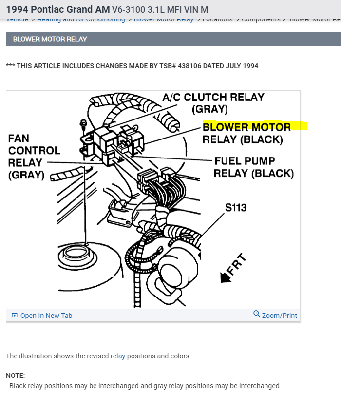 The blower motor relay is located under the hood (see diagram).