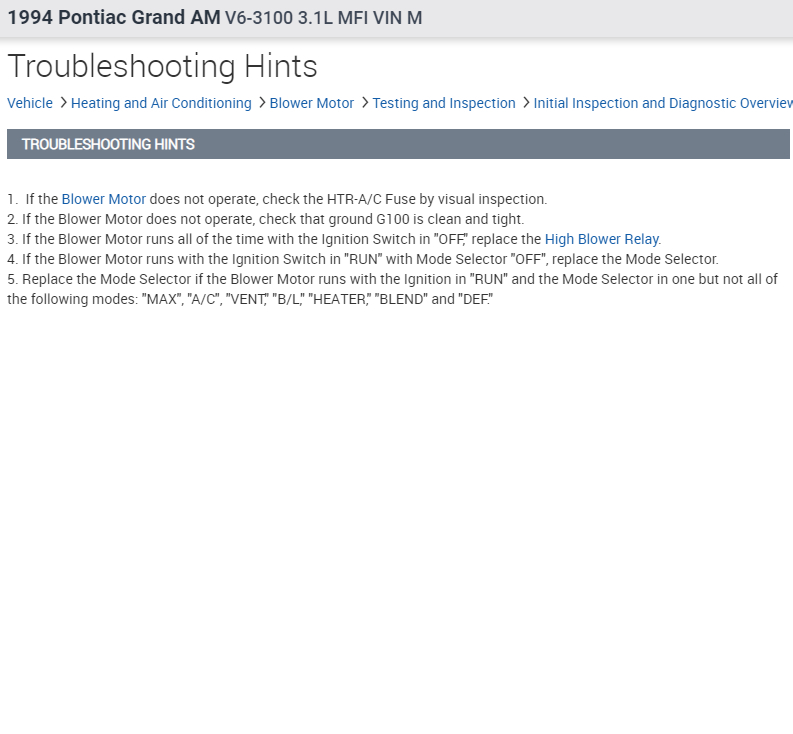 An inoperative blower fan can be due to a faulty switch, bad relay, malfunctioning blower motor resistor, bad motor or wiring issue.