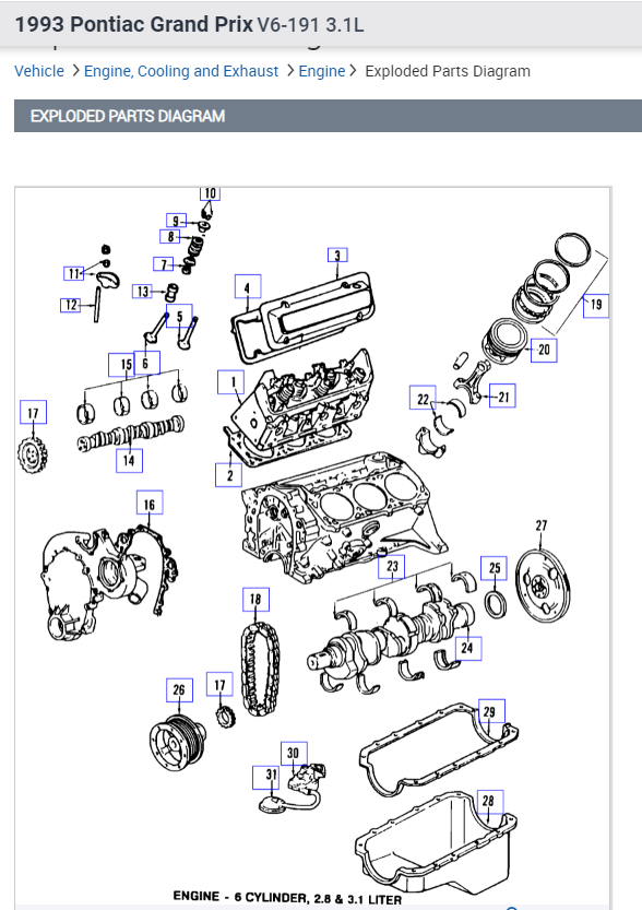 As for the replacement, you will need to find another 3.1L engine out of similar year grand prix. You might be able to use 3.1L engine out of a Chevy Lumina or Monte Carlo as well.