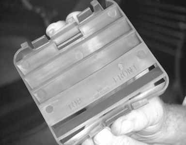 This Grand Prix had a slotted vent panel covering the high-mounted stoplamp assembly. Squeeze the ends to remove or install..
