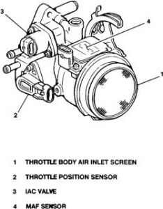 Check for a poor connection at the PCM or IAC motor. Inspect the harness connectors for backed out terminals, improper mating, broken locks, improperly formed or damaged terminals and poor terminal-to-wire connection. Inspect for a damaged wiring harness, especially if heavy work has recently been performed (intake manifold removal, engine removal, etc.) where the throttle body has been disturbed. Inspect for a restricted air intake system. Check for a possible collapsed air intake duct, restricted air filter element or foreign objects blocking the air intake system. Inspect the throttle body. Check for objects blocking the IAC passage or throttle bore. Excessive deposits, especially on high-mileage engines, can build up in the IAC passage and on the IAC pintle. Excessive deposits can also build up on the throttle plate, so check for a sticking throttle plate.