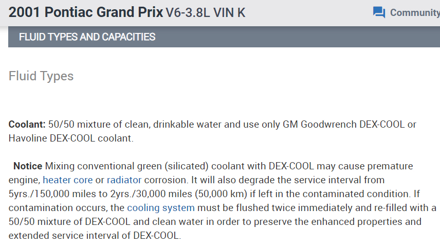 Your vehicle uses the GM brand DEXCOOL which is orange in color. I've attached 2 pictures below of you vehicles requirement and description. Hopefully he didn't use the green type of coolant. Hope this helps and thanks for using 2CarPros.