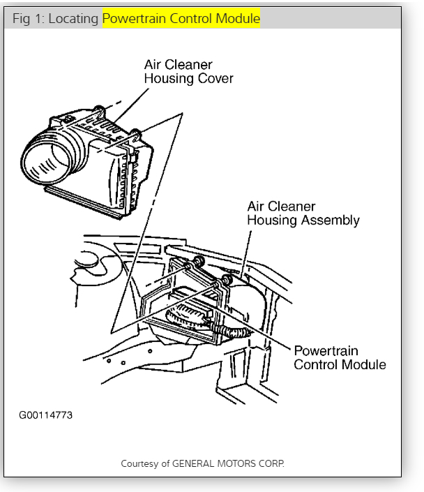 Powertrain Control Module (PCM) Left front side of engine compartment, in air cleaner assembly. If you intend to replace it, the replacement will have to be re-flashed. Check out the diagrams (Below). Let us know what happens and please upload pictures or videos of the problem.