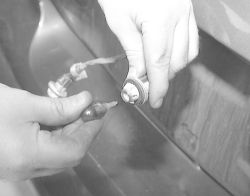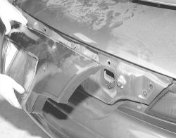 How do you change the license plate light bulbs on a 2000 Sunfire? I believe that the license plate lights also illuminate the "pontiac" logo on the back of the trunk. I took off my license plate but couldn't get to the lights from the outside. When I opened the trunk I removed 3 bolts, a high one right in the middle (that you can also see through the clear plastic on the outside of the trunk) and two other bolts on each side of the middle bolt.(The bolts have about 10 inches inbetween each other) I thought by removing the bolts I could pull the plastic off the outside of the trunk and replace the bulbs, but that didn't work either! Please HELP! Thanks!