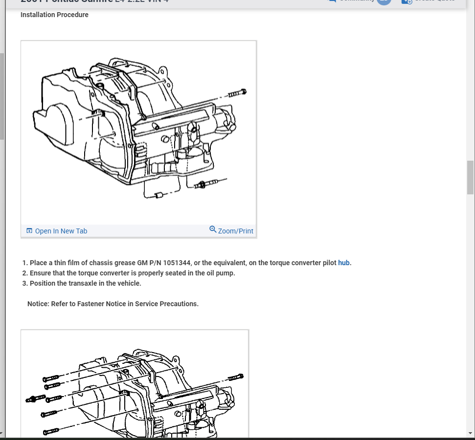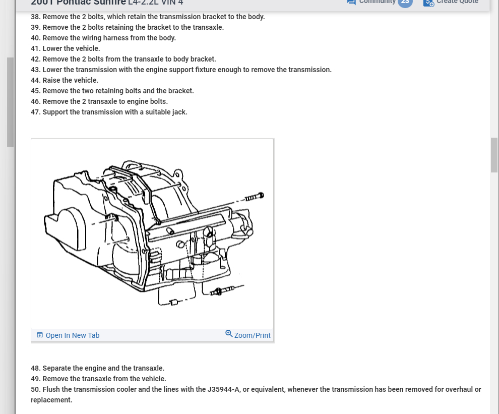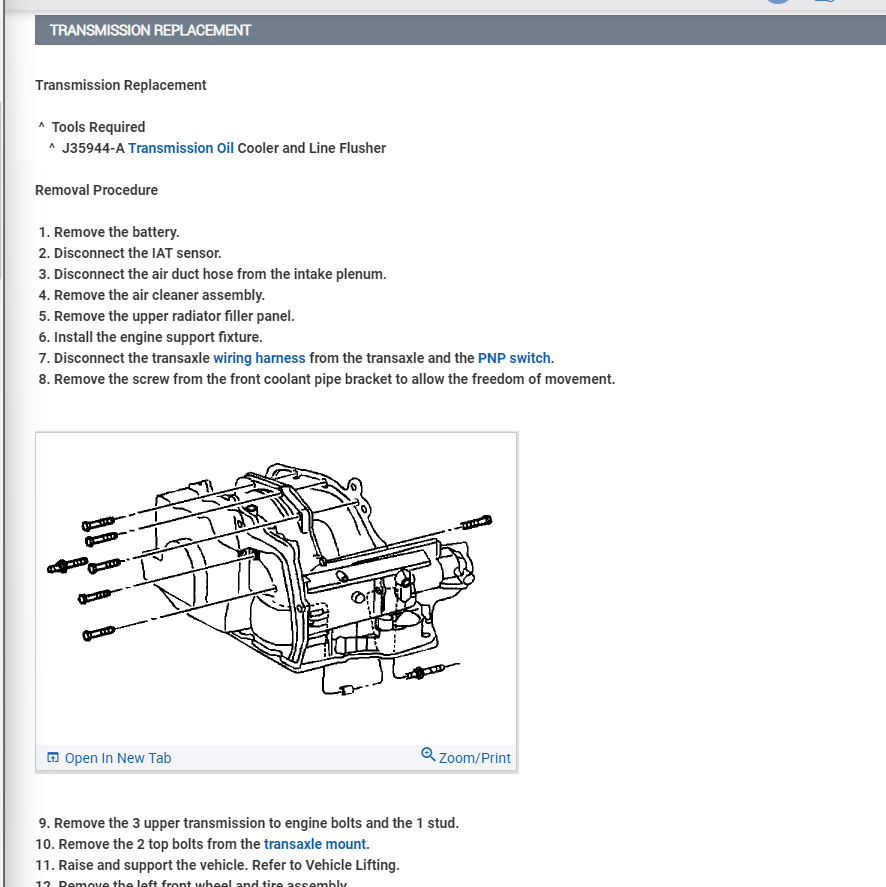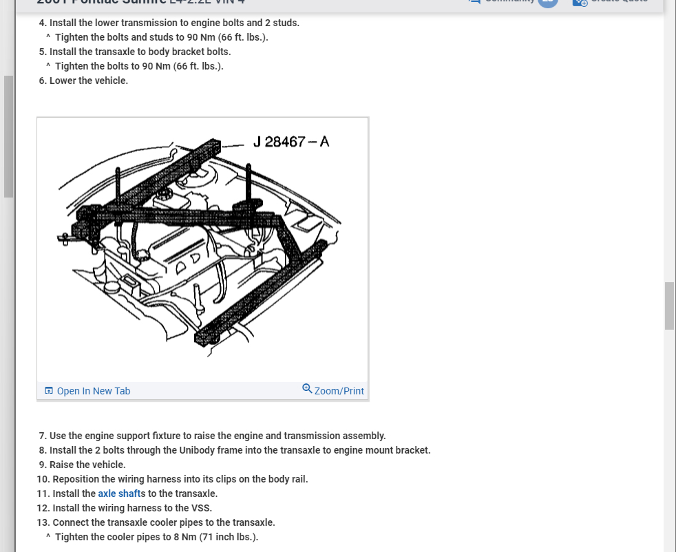 I need transmission replacement instructions including Illustrations on 2001 Pontiac sun fire. Thank you