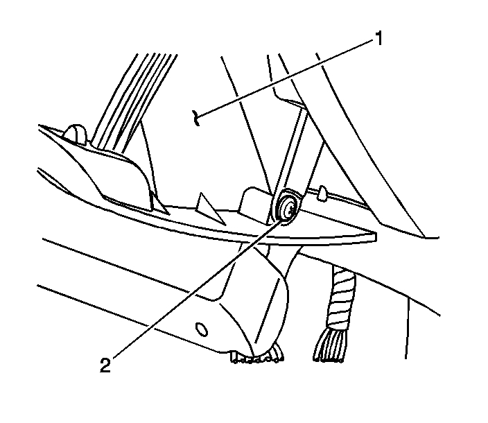 4. Install the screw (2) to the right side of the compartment door (1).