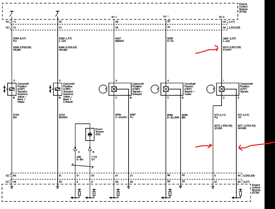 I would check the wiring between the PCM and crankshaft sensor electrical connector. Here is a guide to help with the wiring diagrams below of the wires to be tested, I marked them in red.