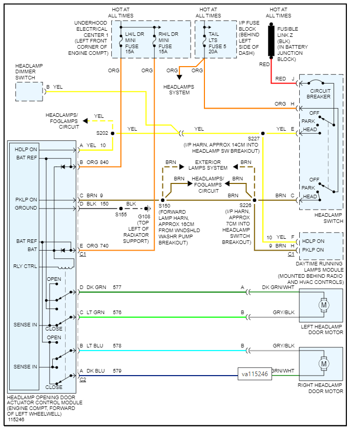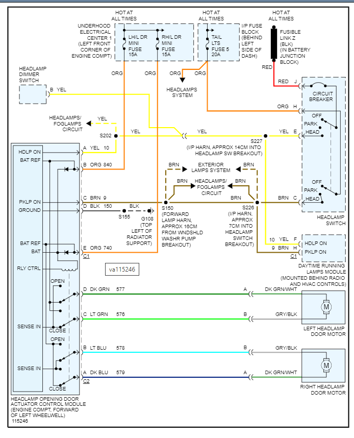 After several looks at fuses and relays, I was able to replace the larger 50A fuse with no luck. But after some sequence of events, disconnected the negative terminal of the battery, removed the fuse, and reconnected everything, turning the switch to turn headlights on allowed the doors to popup but the bulbs were not on. Furthermore, the doors did go down after turning off but never came back up when attempting a second time.