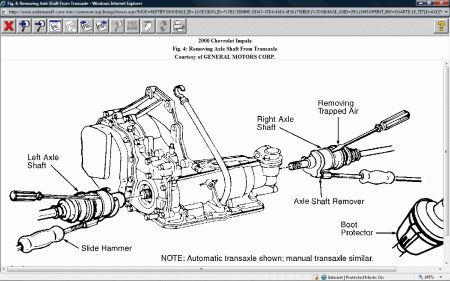 For right-side of Intrigue, top and front transaxle brace bolts must be removed for tool access. Remove axle shaft from transaxle using Axle Shaft Remover (J-33008-A), Axle Shaft Remover Extension (J-29794) and Slide Hammer (J-2619-01).