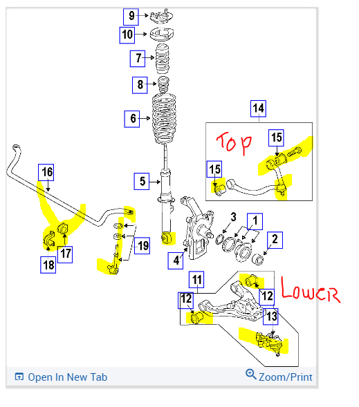 See pics below. Note: Pic 2 is the upper control arm and pic 3 is the lower control arm.